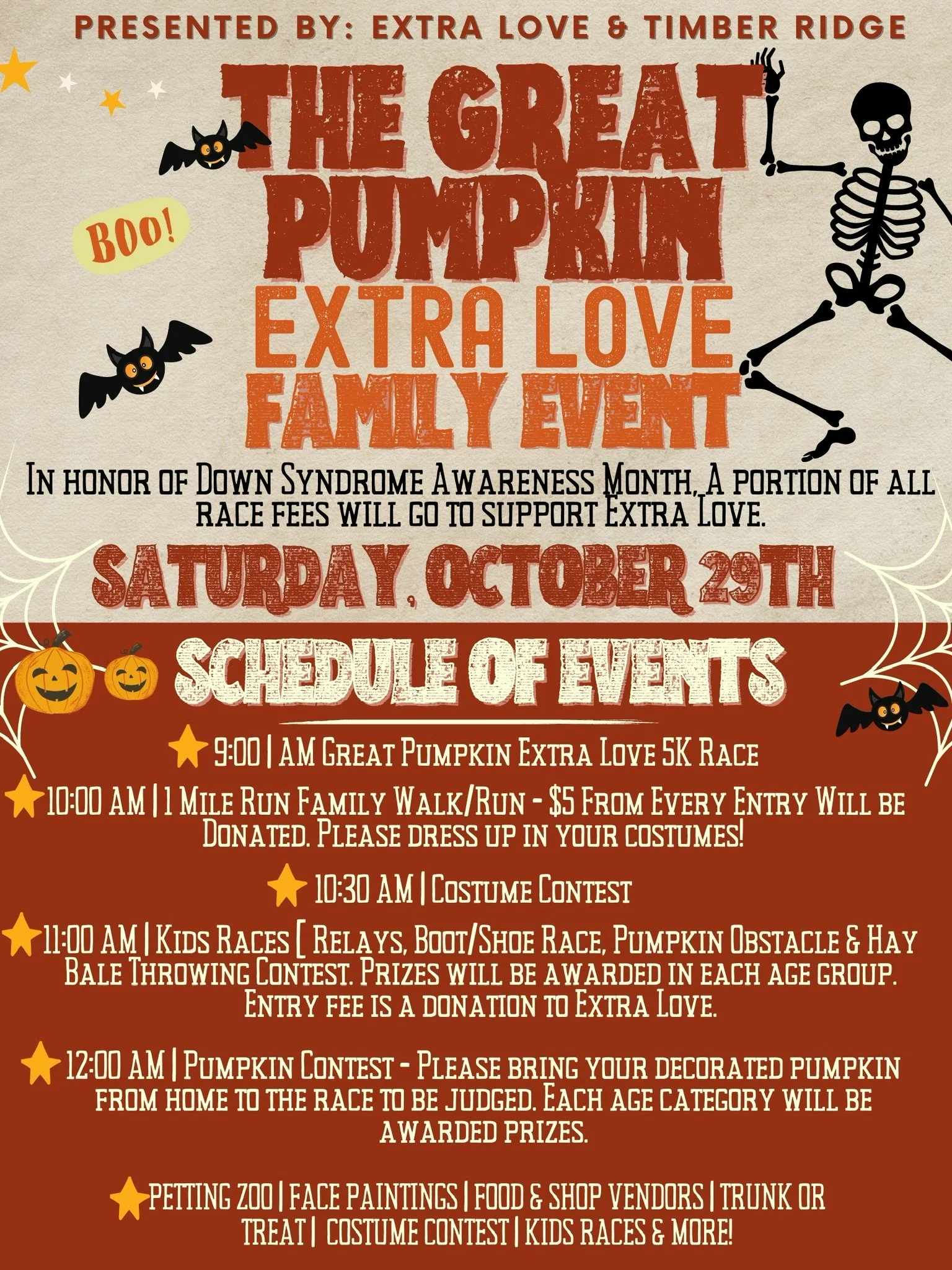 ๐ ๐ต:๐ฌ๐ฌ ๐๐ | The day will kick off at 9 AM with the Great Pumpkin ๐ซถ๐ผ Extra Love 5K Run.