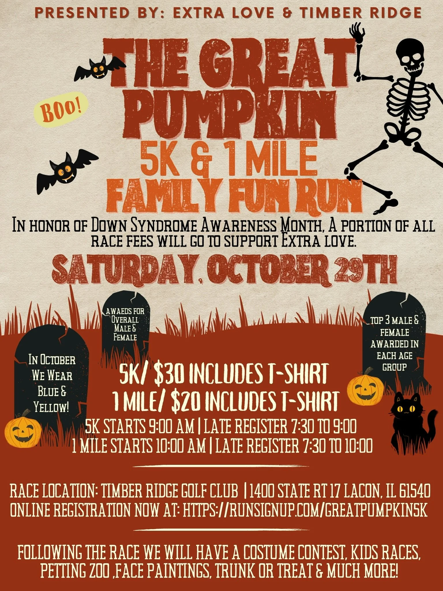 Race Sign Up: https://runsignup.com/Race/IL/Lacon/GreatPumpkin5k1mile